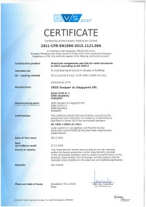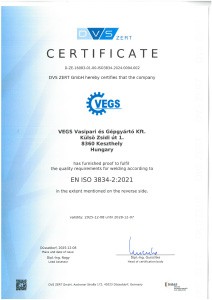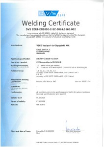 Vállalatunk a következő minősítésekkel rendelkezik ISO 9001:2015 Letöltés DIN EN ISO 3834-2 Letöltés EN 1090-1 Letöltés EN 1090-2 EXC3 Letöltés